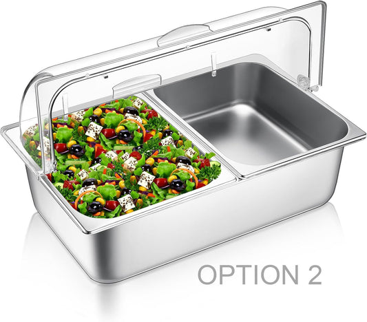 Ice Pan Stainless Steel 6" Deep Bundle with Trays & Clear Dome Lid Water Pan