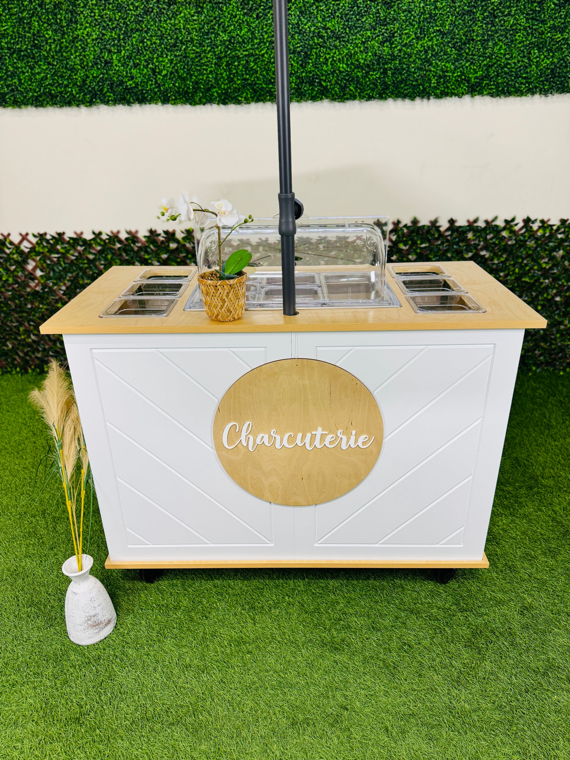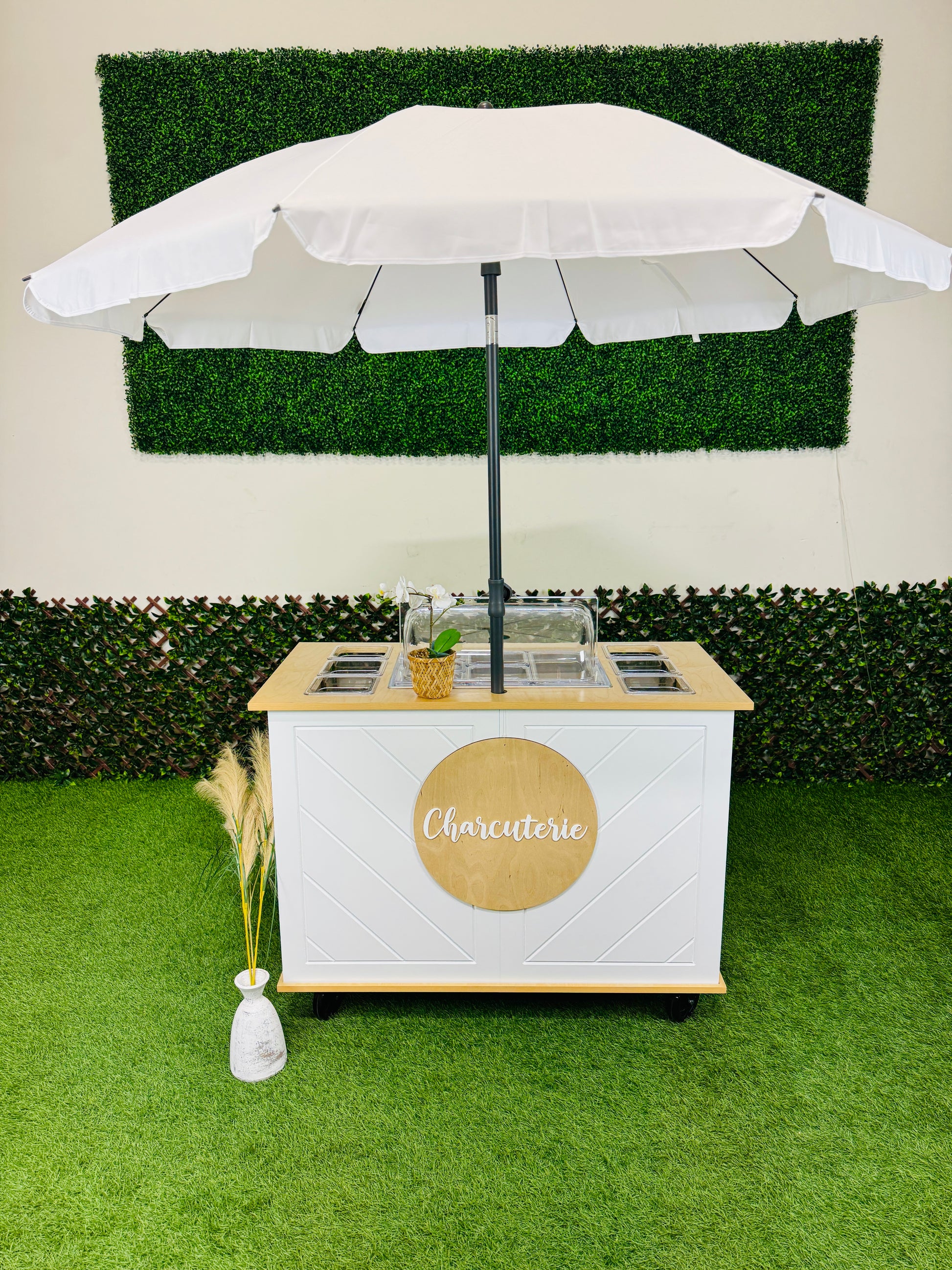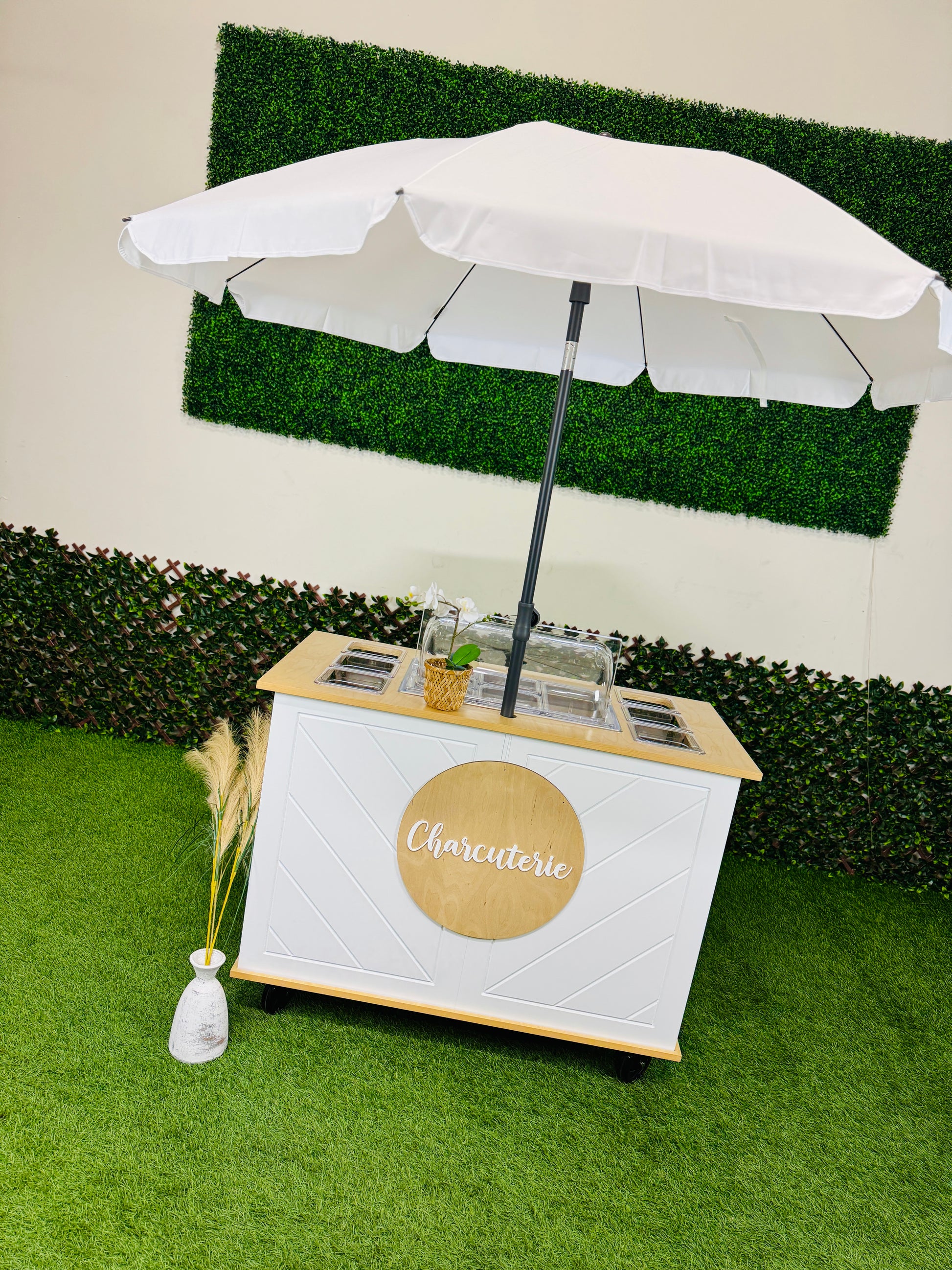 Charcuterie Cart 4ft Herringbone Style -THE CLASSY- Portable Snack Bar Catering Cart White Color