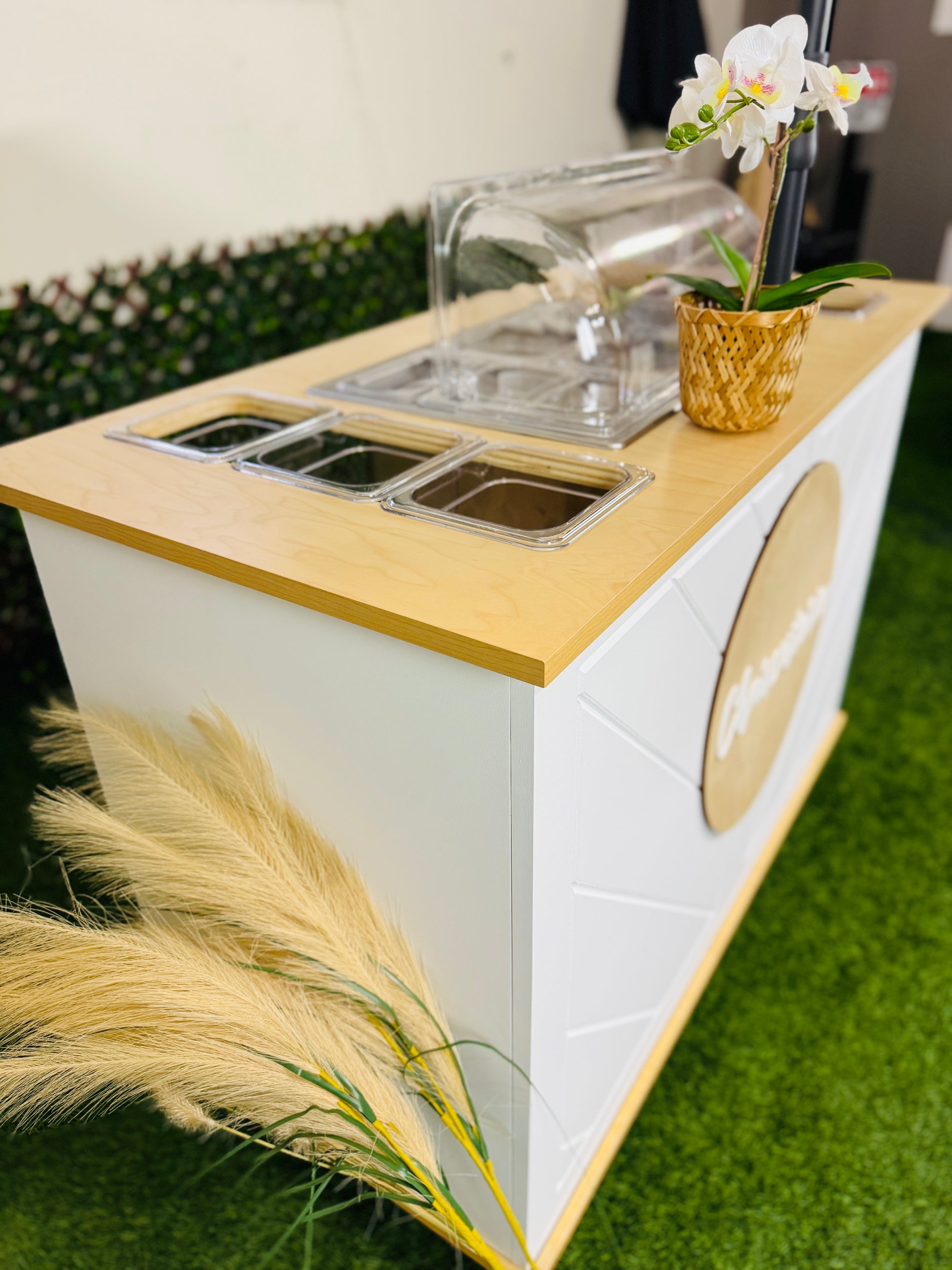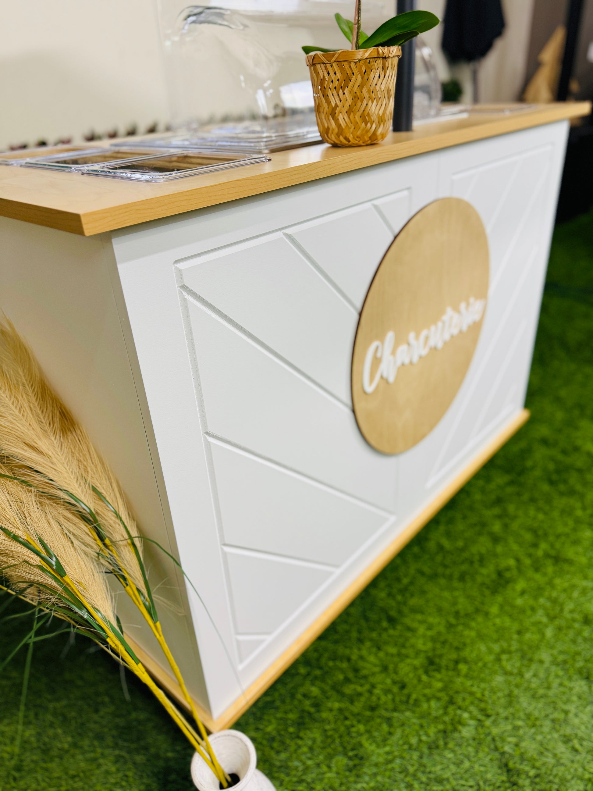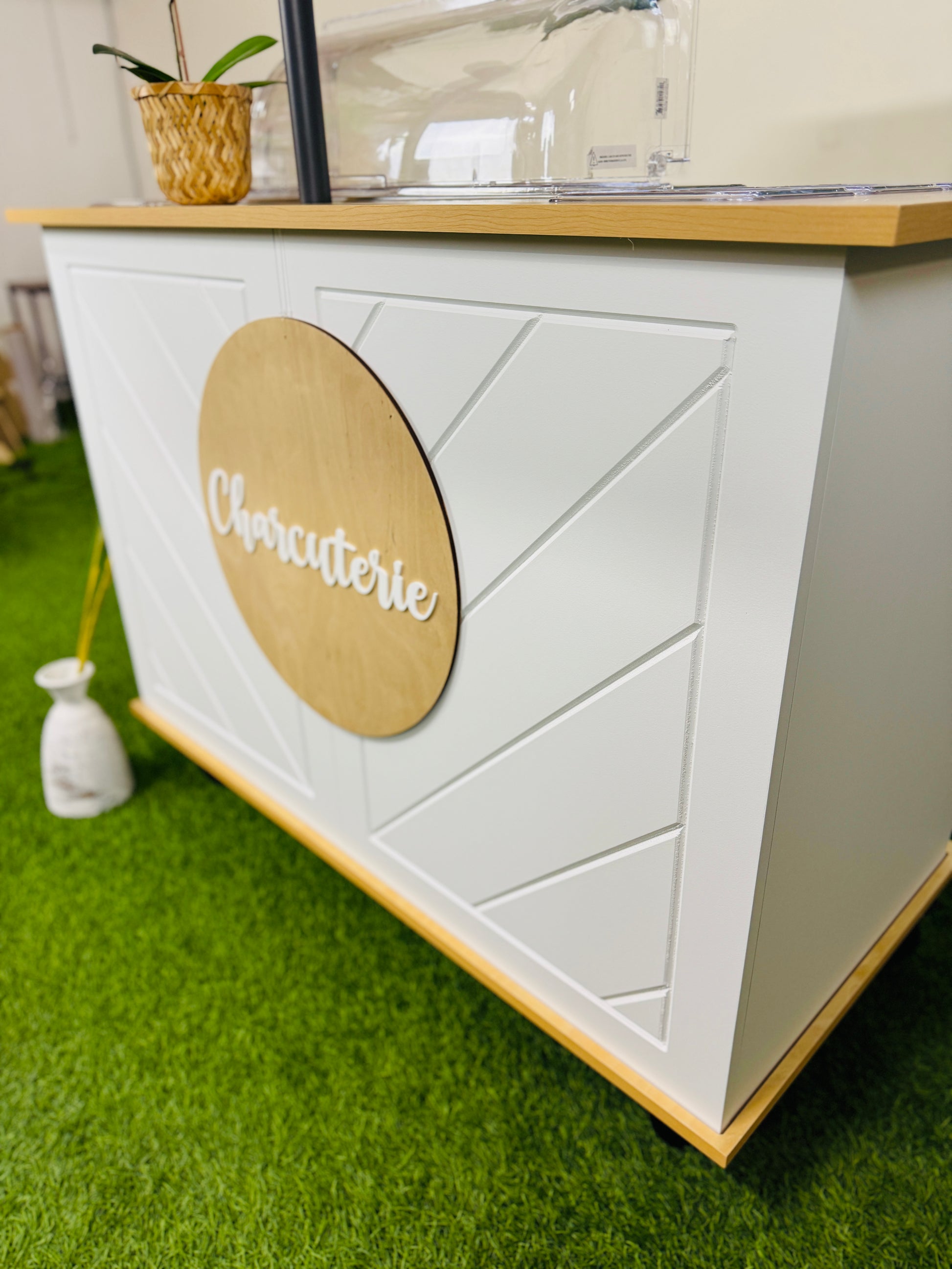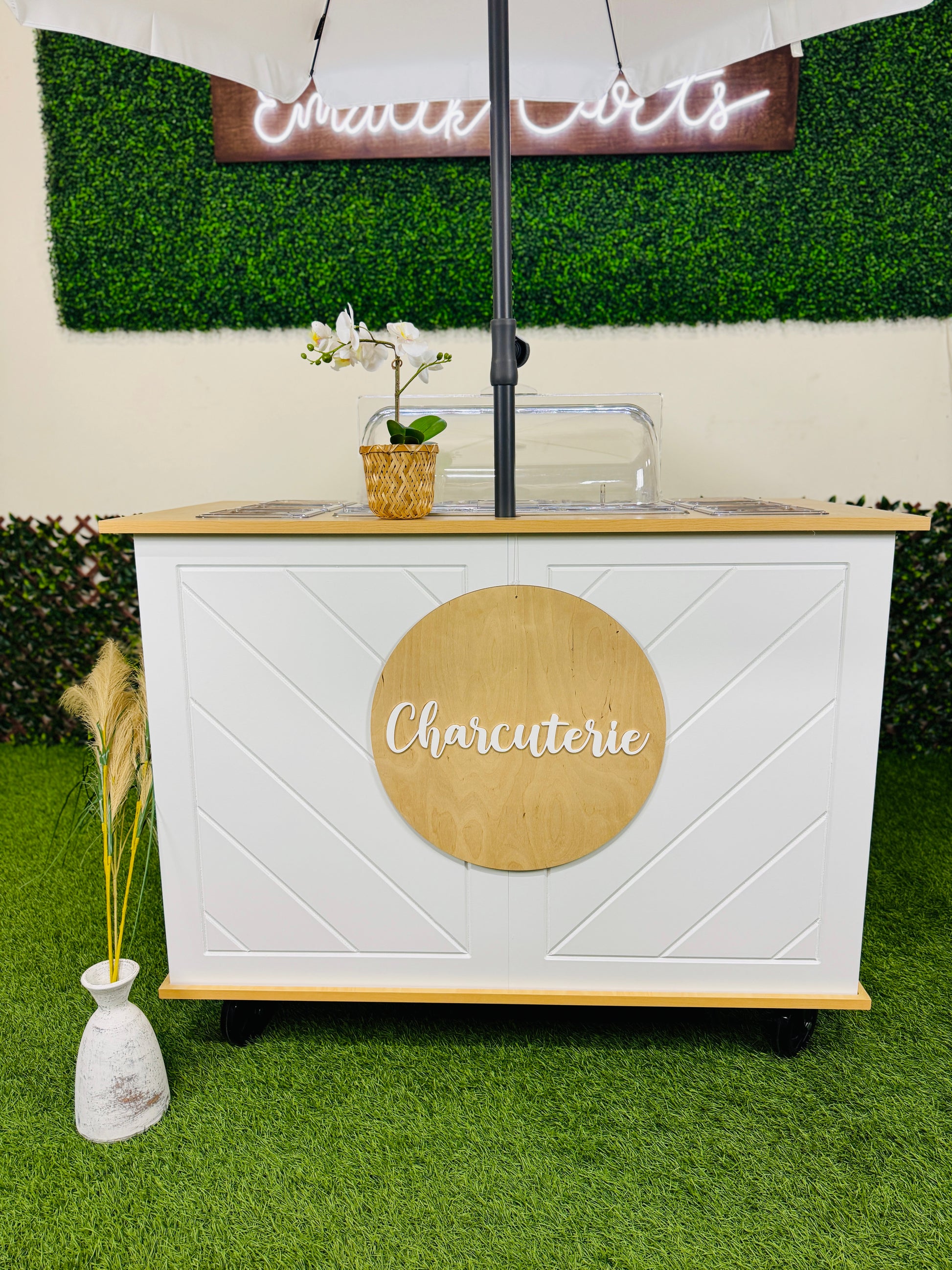Charcuterie Cart 4ft Herringbone Style -THE CLASSY- Portable Snack Bar Catering Cart White Color