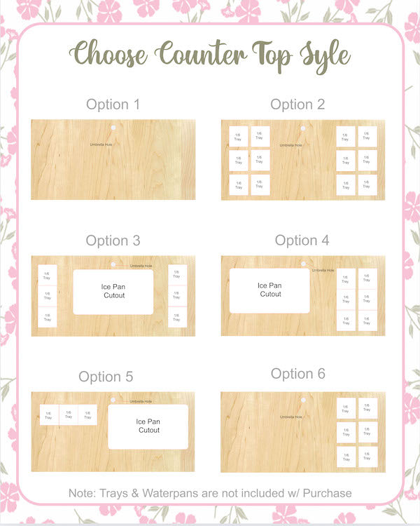 Customizable Countertop Options: Choose from a variety of countertop styles to suit your business needs (trays not included).