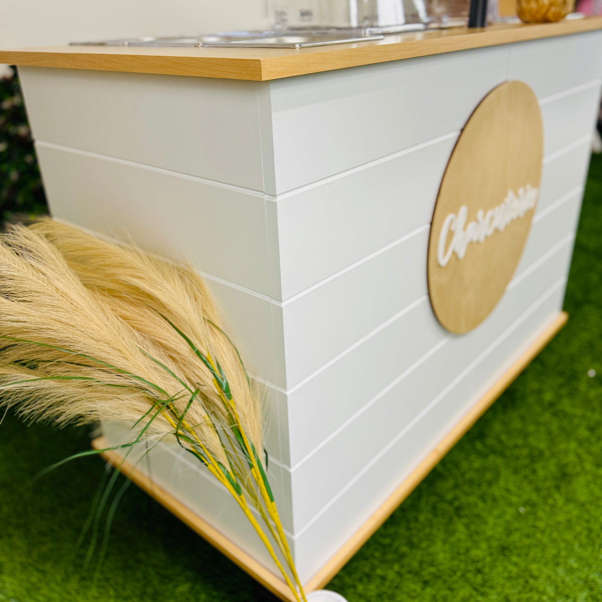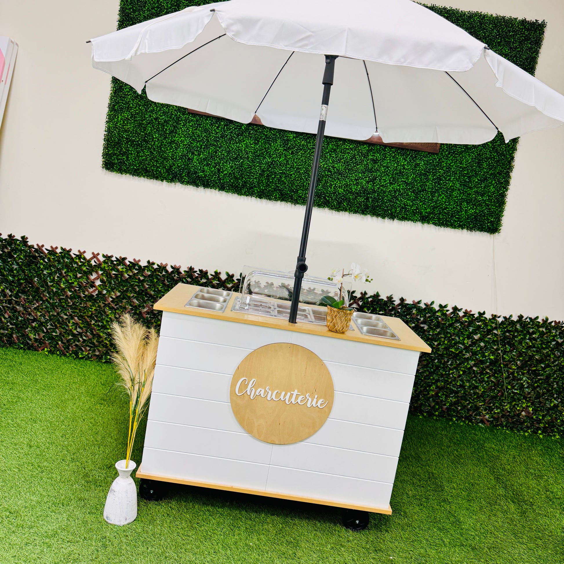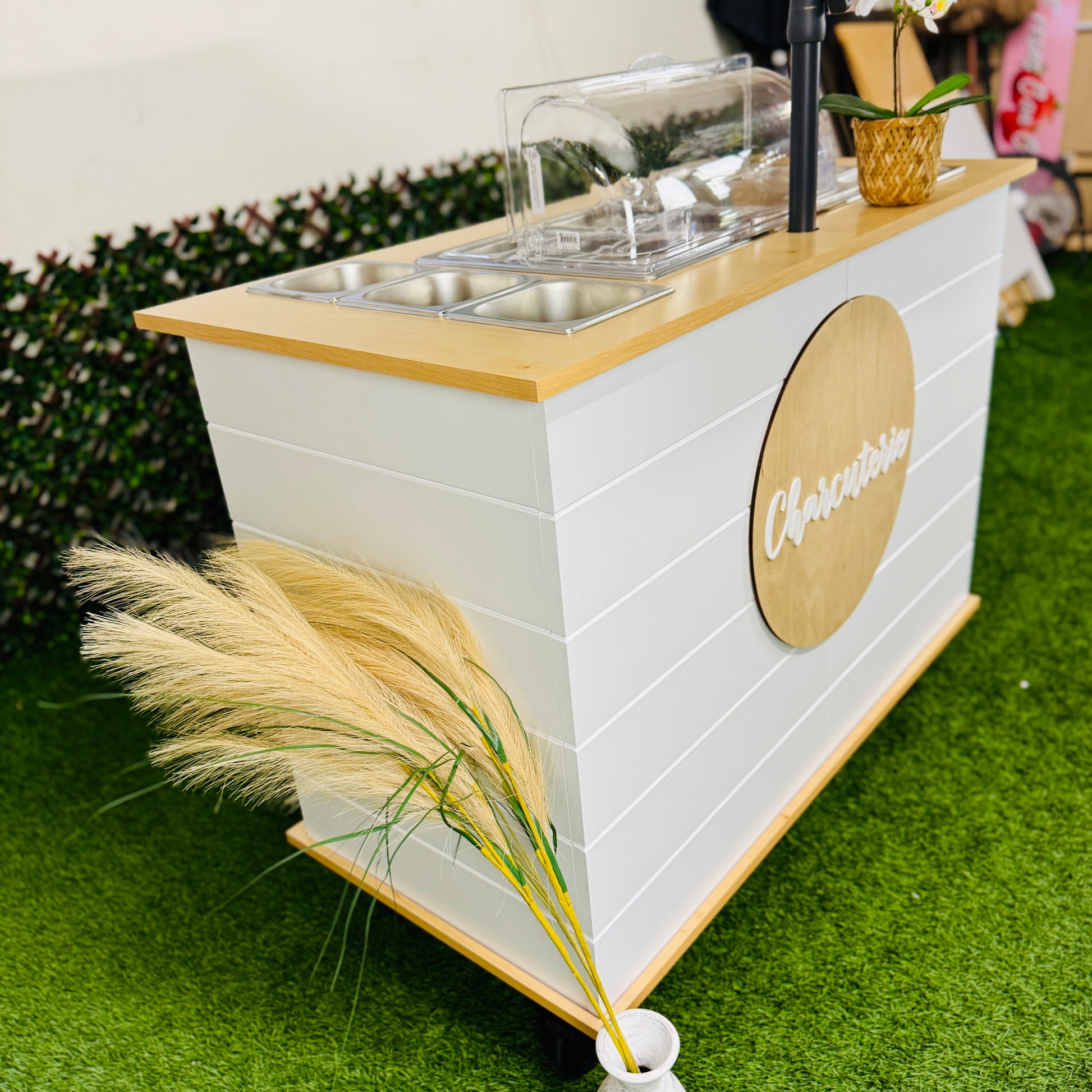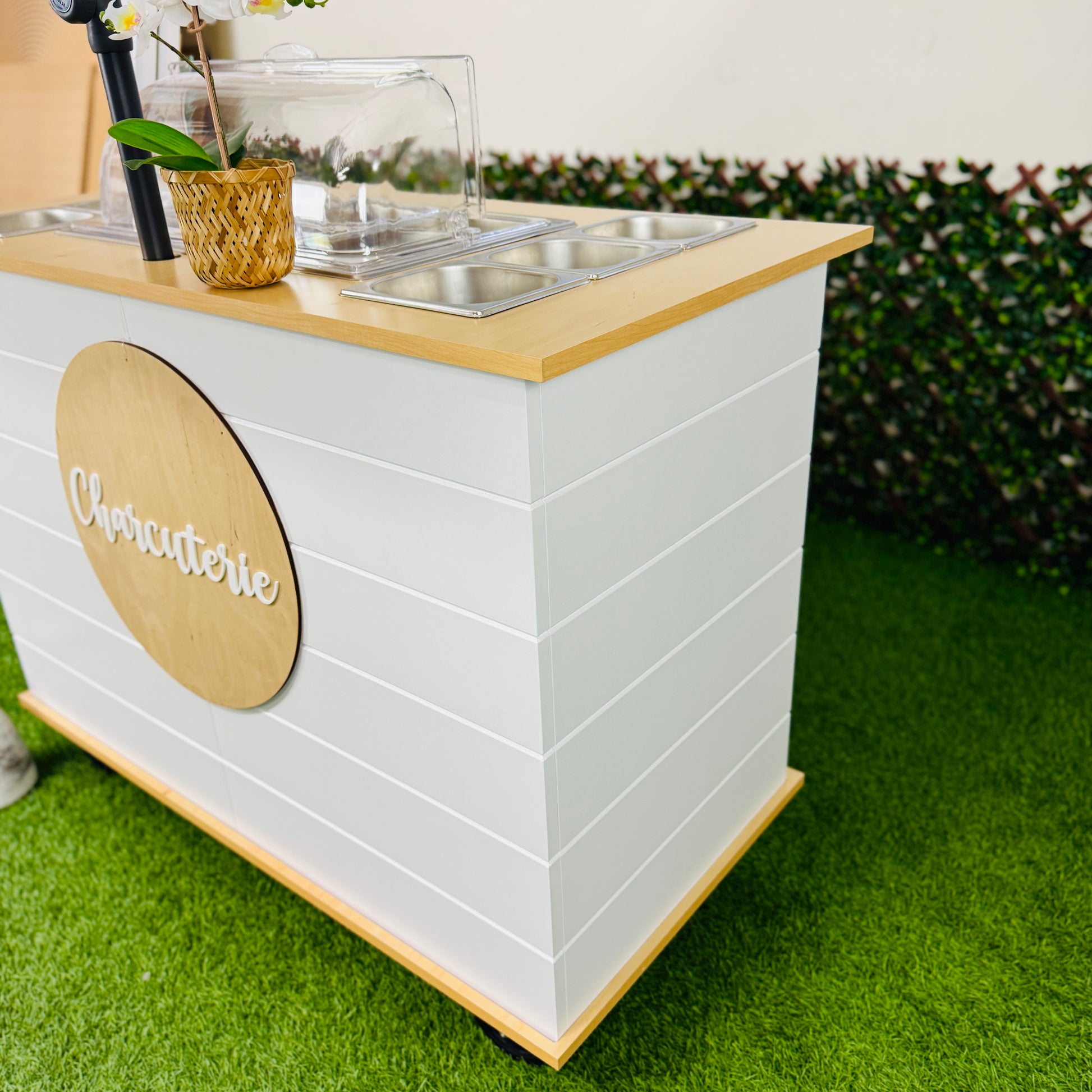Charcuterie Cart 4ft Shiplap Style -THE CLASSY- Portable Snack Bar Catering Candy Cart White Color